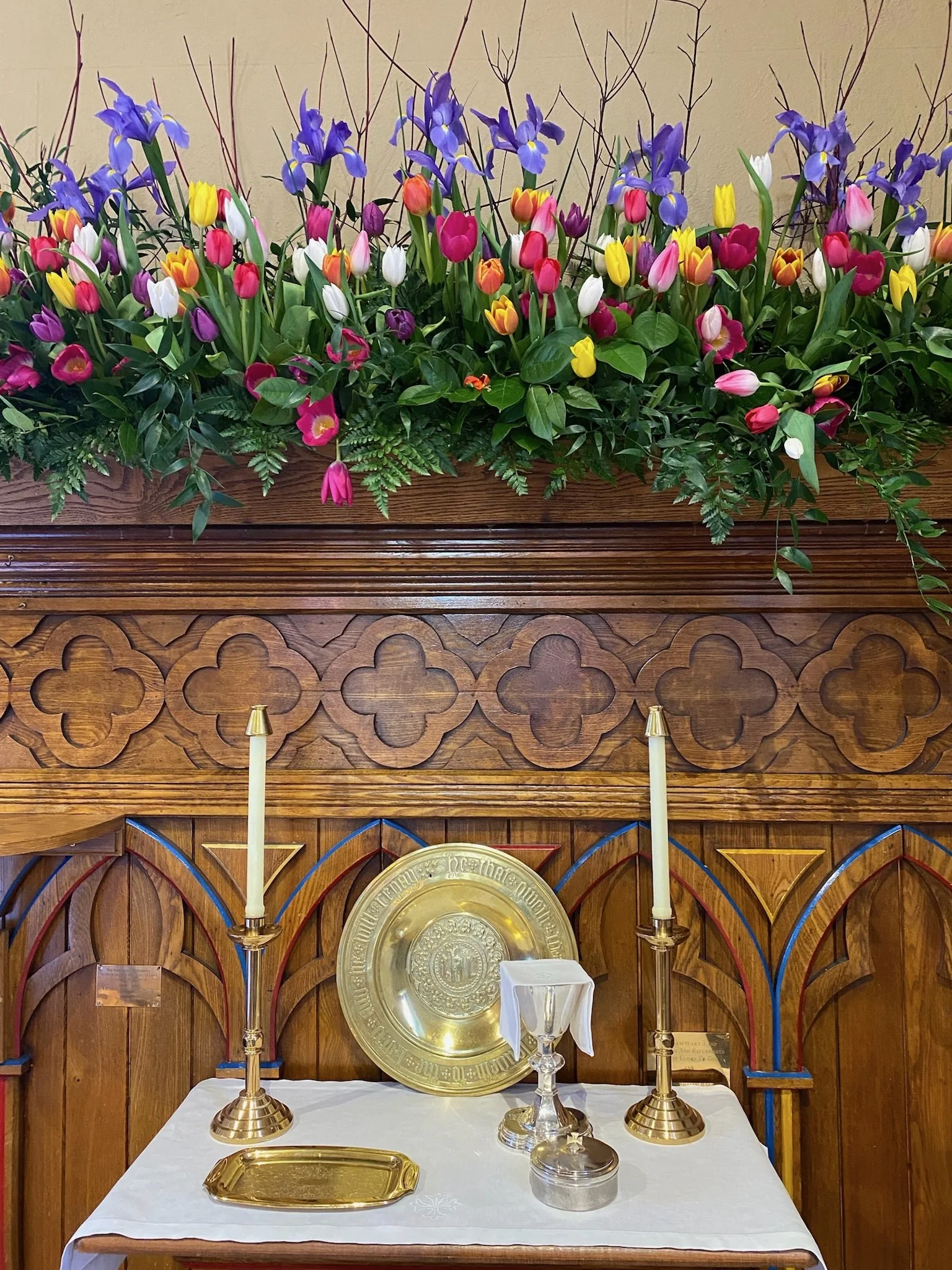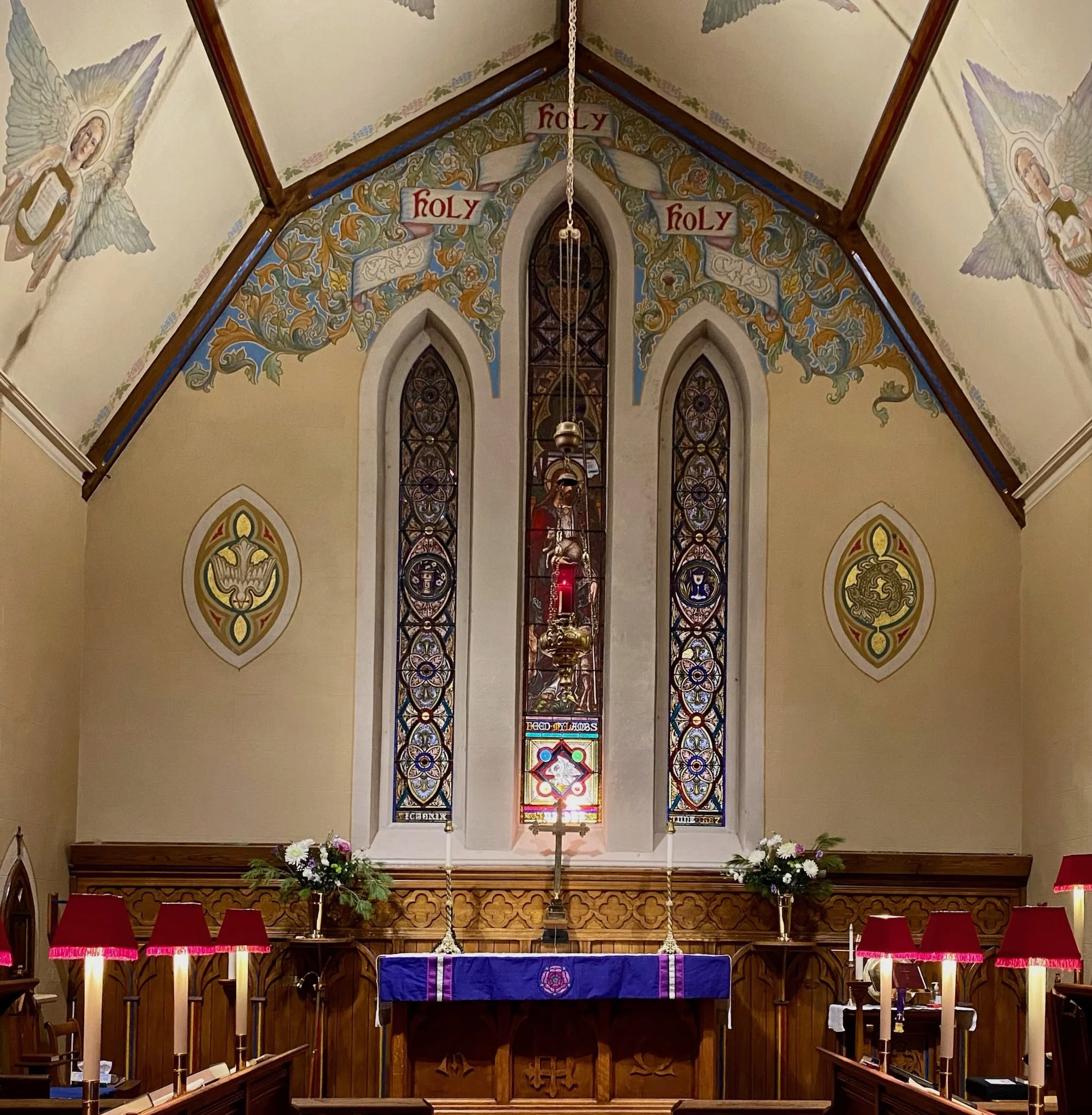 Adjacent to the church is the Parish Centre, a restored heritage building, which houses our office space, meeting rooms, and music library. The nave and chancel are known for some beautiful stained glass windows. The beautiful artwork on the walls and ceiling was painted by Gordon Couling AOCA, late professor of Fine Arts at the University of Guelph. Icons were created by local iconographer, Symeon van Donkelaar, of Conestoga Iconographic Studio. Many of the seasonal altar frontals were designed and made by local textile artist, Elizabeth Litch.